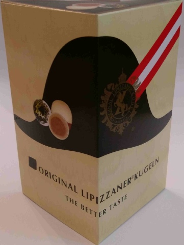 Pralinen gefüllt mit Nougatcrème (34%), eingebettet in Marzipan (41%), (je nach Modell) umhüllt von weisser Schokolade, stannioliert.