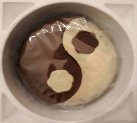 Schokolade-Torte, gefüllt mit Marillenkonfiture, überzogen mit weisser und dunkler Schokoladeglasur