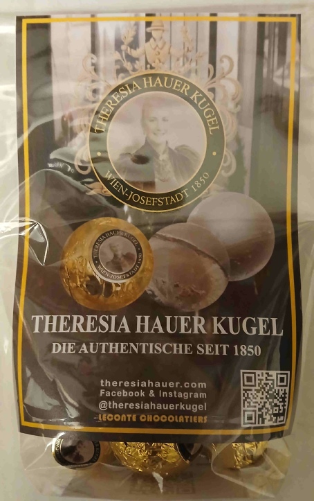 Schokolade-Pralinen gefüllt mit einem Kern aus Nougatcrème (34%), eingebettet in Marzipan (41%), umhüllt von Schokolade, stannioliert.