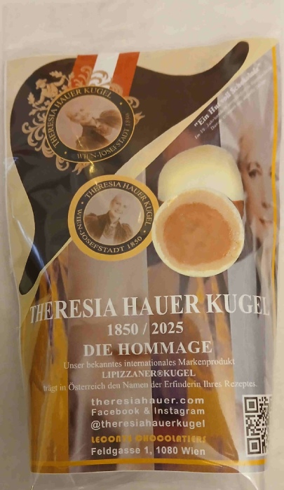 Pralinen gefüllt mit Nougatcrème (34%), eingebettet in Marzipan (41%), umhüllt von weisser Schokolade, stannioliert.